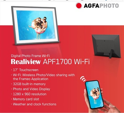 Agfaphoto Digitale WiFi fotolijst 17 inch Zwart
