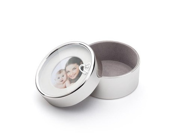 Fotodoosje hartjes, verzilverd gelakt, Ø103x50 mm