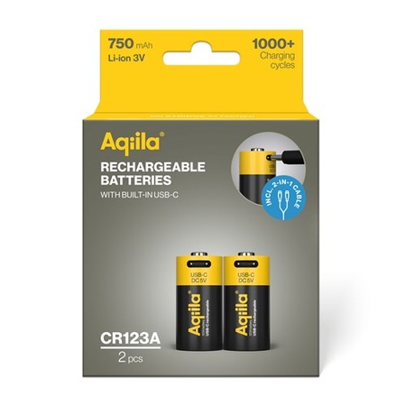 CR123A batterij Oplaadbaar Aqiila USB-C 750 mAh Li-Ion 3V 2