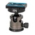 Het titaniumkleurige, CNC-gefreesde kogelkop is Arca Swiss-compatibel en is uitgerust met een panoramaschaal, frictie-, snelkoppelingsplaat met ¼ " camera-aansluiting en een waterpas .